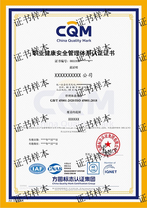 認(rèn)證用標(biāo)準(zhǔn): GBT45001-2020